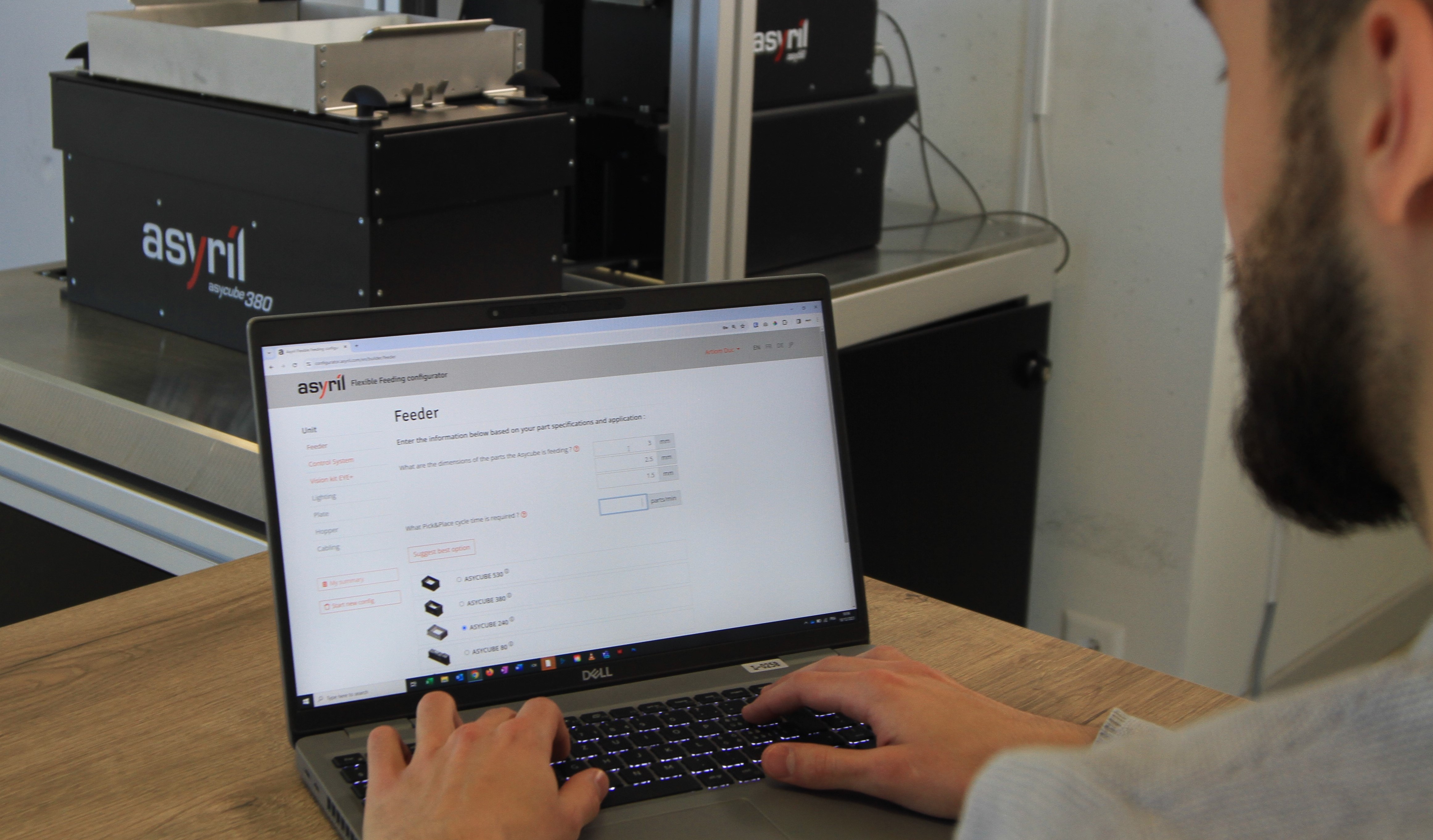 Our configurator is your companion to find the ideal combination of Asycube flexible feeder, EYE+ smart control system and Asyfill smart hopper for your project.